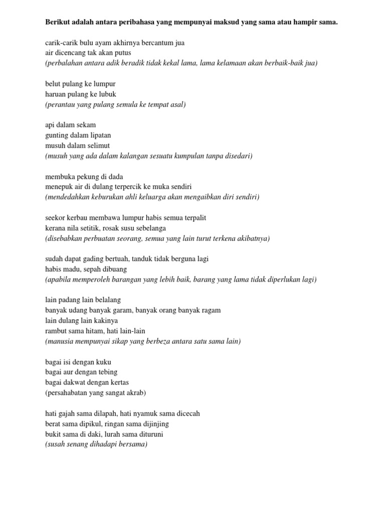 Rambut sama hitam hati lain-lain. PERIBAHASA SAMA MAKSUD 1. Rambut sama hitam hati lain-lain.